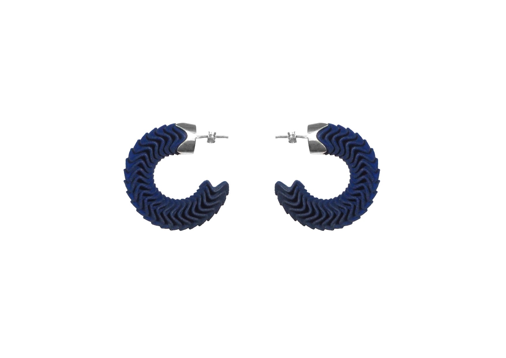 Bold contemporary hoop earrings comprised of undulating wave patterns with hand-dyed, graduated colour. These are light on the ear, with highly polished bespoke silver post fittings for an added touch of luxury.